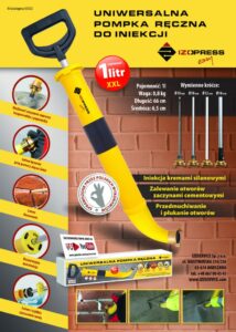 Pompka Izopress Easy do iniekcji Idealna do iniekcji kremami silanowymi, zalewania otworów zaczynami cementowymi, przedmuchiwania i płukania otworów, przydatna przy mocowaniu ościeżnic, wypełnianiu przestrzeni, fugowaniu marki Izoservice Izoservice IZOPRESS EASY